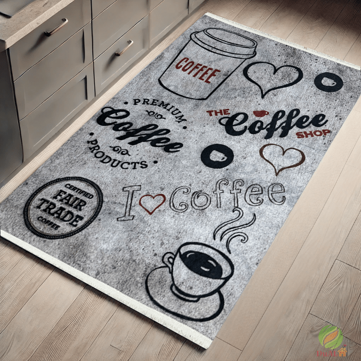 Covor Bucatarie Ritmo Gri, 120x180 cm transformă bucătăria cu un aspect modern, ideal pentru iubitorii de cafea! Cu un design inspirat de cafenele, acest covor adaugă o notă de căldură și stil bucătăriei.