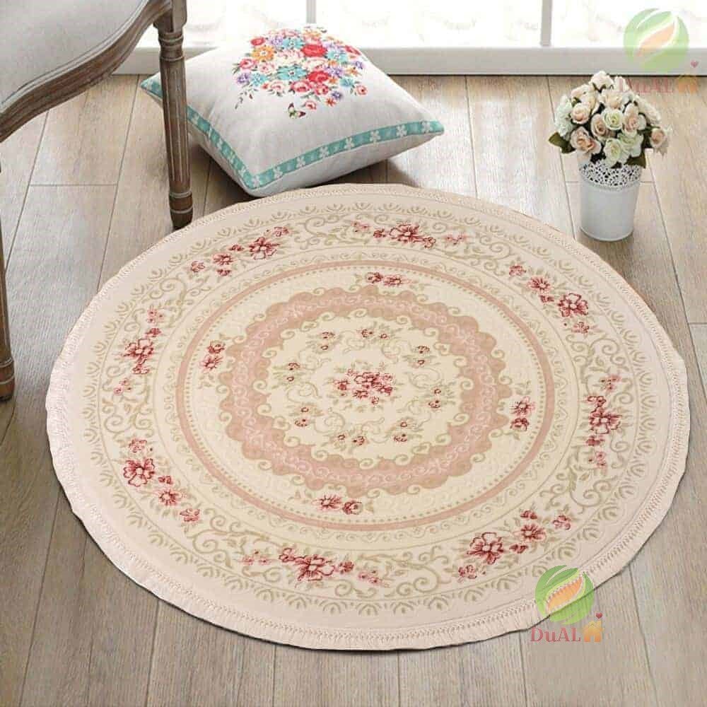 Covor Deluxe Hunkar Roz Rotund, 98x98 cm, Floral