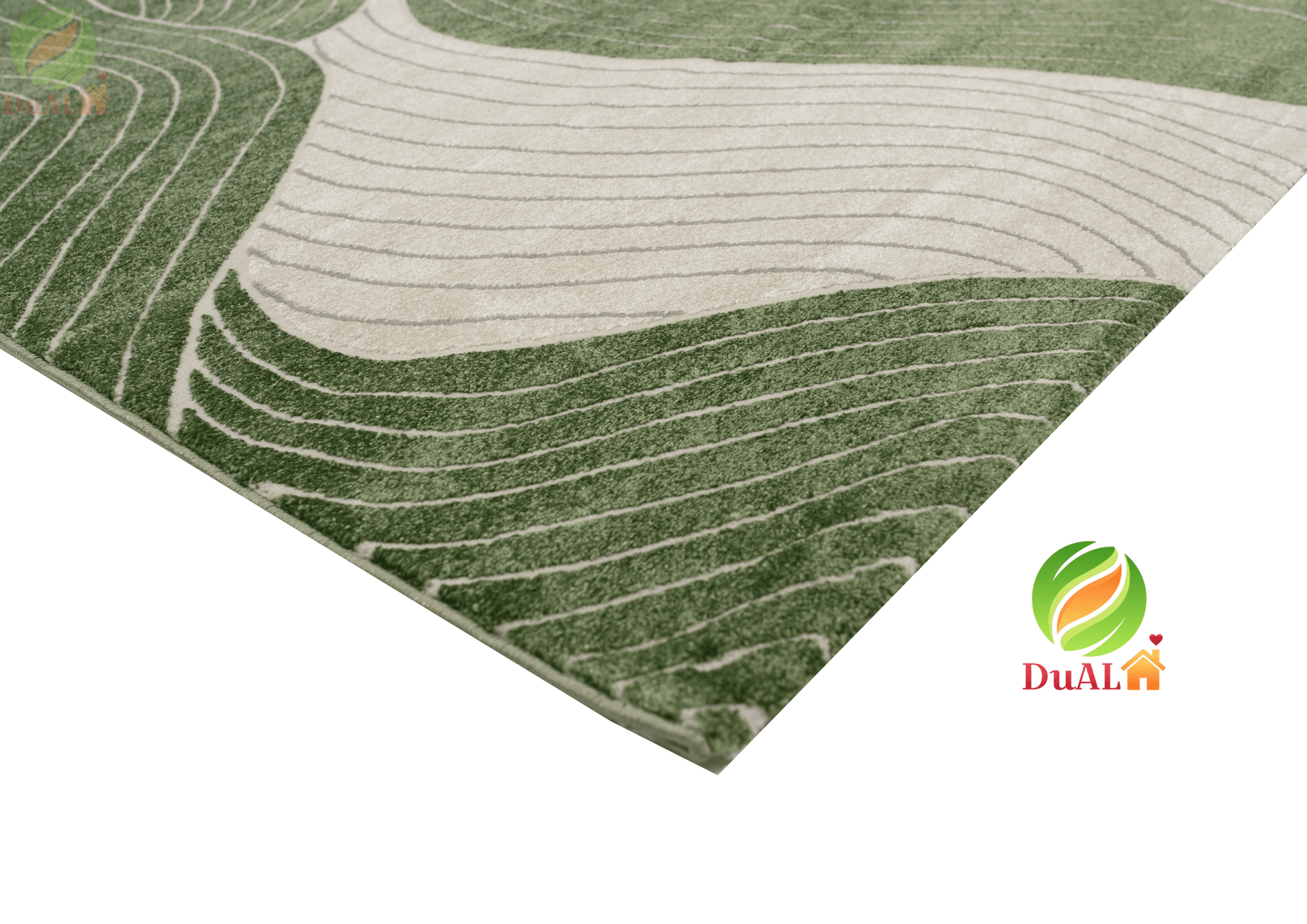 Covorul Eylul Valdi Verde, 60x200 cm, este o alegere excelentă pentru interioarele moderne, aducând o notă de stil contemporan și o atmosferă relaxantă în living, dormitor sau birou. Modelul curbat și nuanțele de verde fac acest covor să fie o piesă centrală rafinată, potrivită pentru un decor armonios.