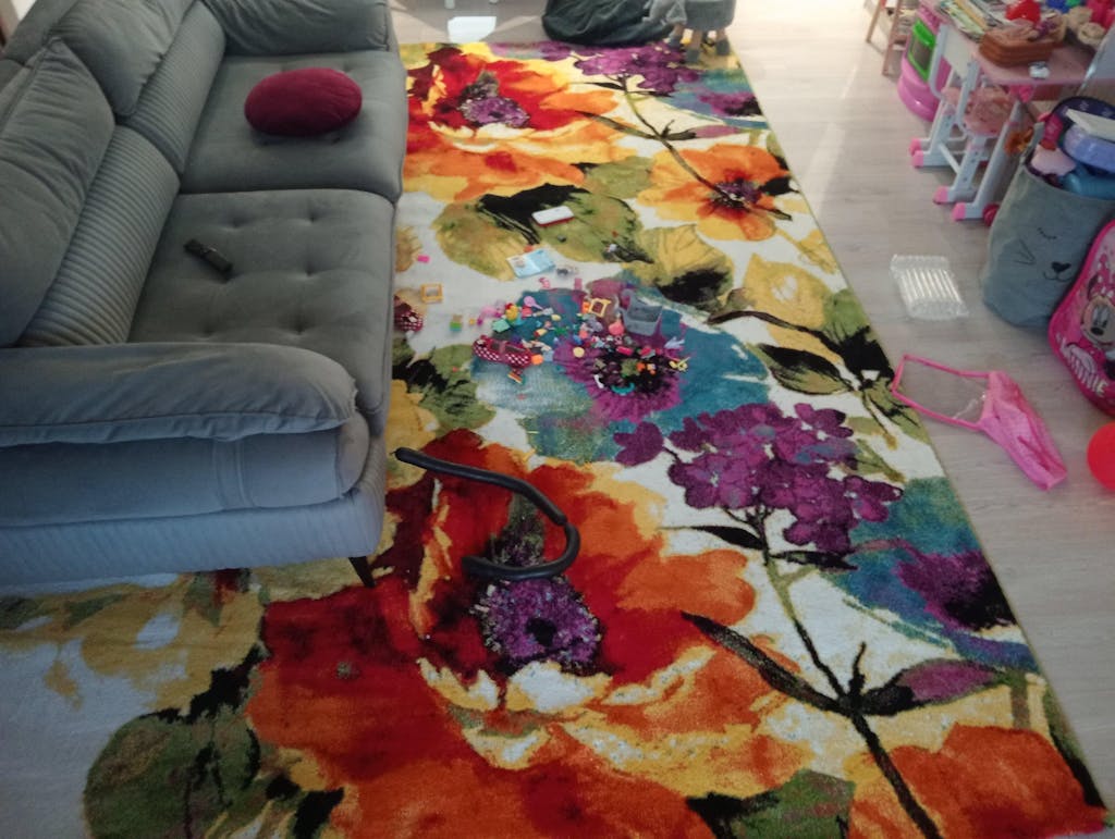 Designul floral multicolor însuflețește orice încăpere și atrage privirile tuturor. Realizat din polipropilenă, este ușor de curățat și întreținut.Țesut cu fire scurte de 15 mm, este moale și plăcut la atingere, e o adevărată încântare să stai desculț pe el.