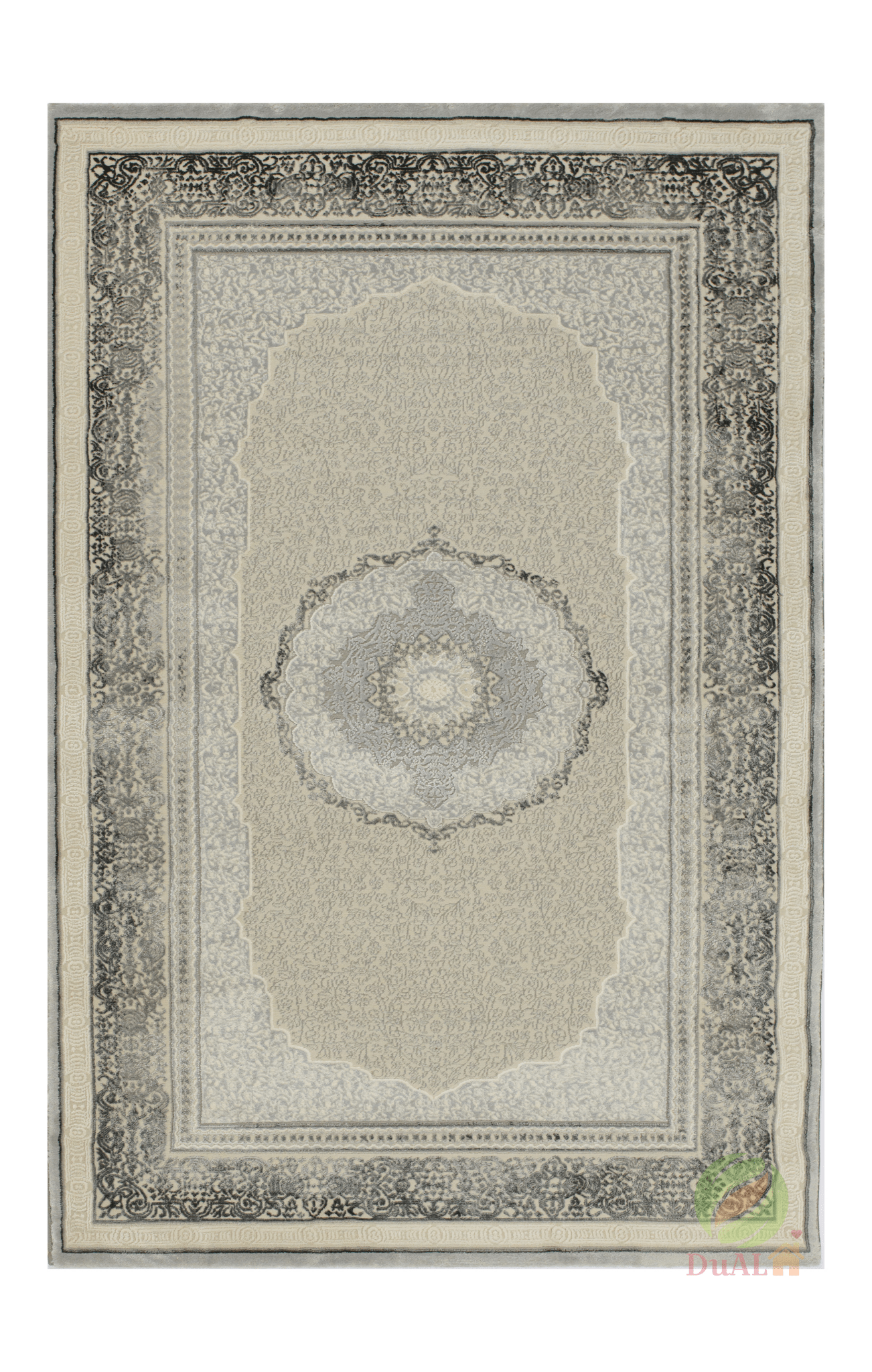 Covor Galeria Mito Bej - Gri, 170x250 cm aduce un aer clasic și elegant în orice încăpere, datorită designului său sofisticat, inspirat de modelele tradiționale orientale. Modelul central ornamental, înconjurat de o bordură bogat decorată, este realizat în tonuri de bej și gri, oferind o atmosferă de rafinament și stil.
