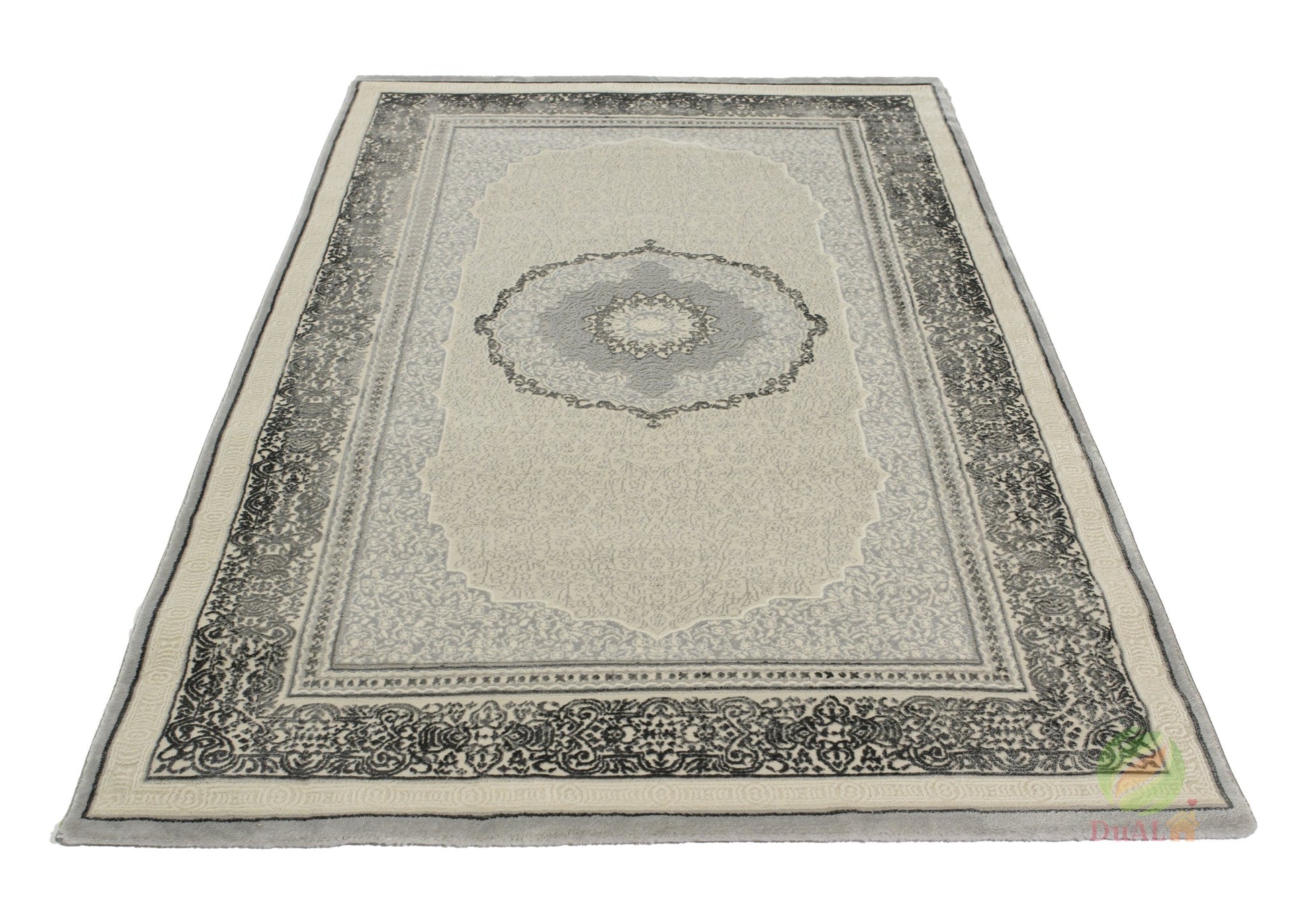 Covor Galeria Mito Bej - Gri, 70x100 cm aduce un aer clasic și elegant în orice încăpere, datorită designului său sofisticat, inspirat de modelele tradiționale orientale. Modelul central ornamental, înconjurat de o bordură bogat decorată, este realizat în tonuri de bej și gri, oferind o atmosferă de rafinament și stil.