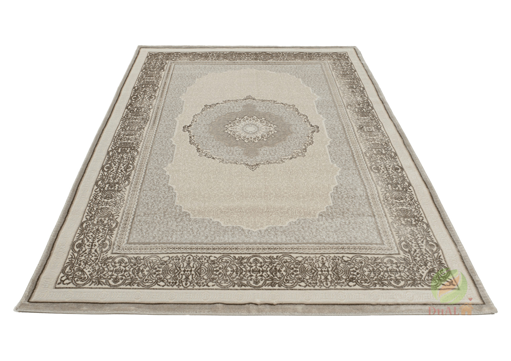 Covor Galeria Mito Bej - Maro, 60x150 cm aduce un aer clasic și elegant în orice încăpere, datorită designului său sofisticat, inspirat de modelele tradiționale orientale. Modelul central ornamental, înconjurat de o bordură bogat decorată, este realizat în tonuri de bej și maro, oferind o atmosferă de rafinament și stil.