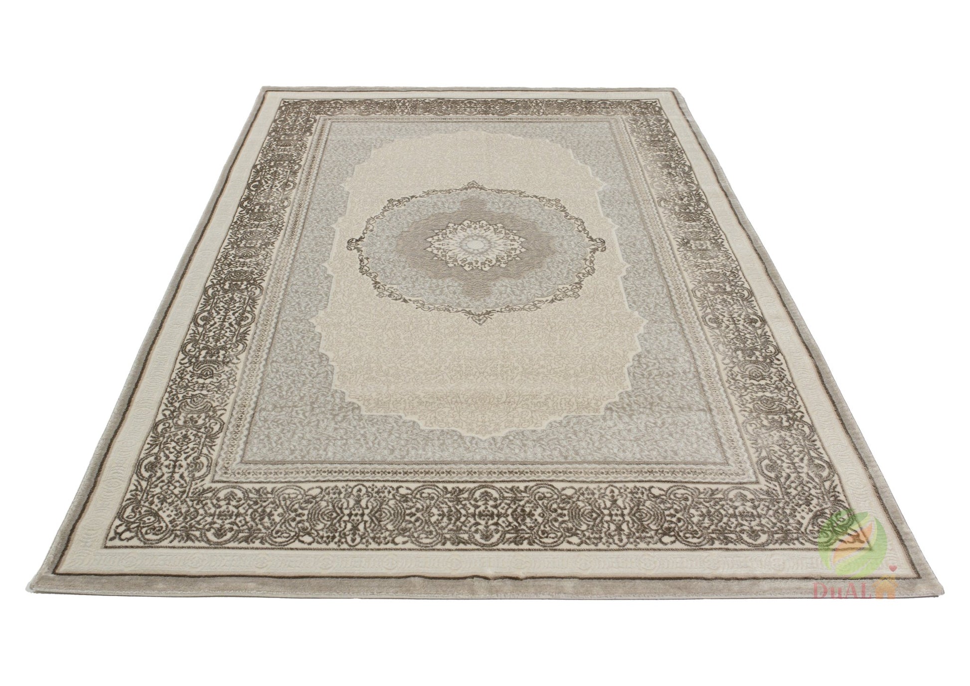 Covor Galeria Mito Bej - Maro, 60x200 cm aduce un aer clasic și elegant în orice încăpere, datorită designului său sofisticat, inspirat de modelele tradiționale orientale. Modelul central ornamental, înconjurat de o bordură bogat decorată, este realizat în tonuri de bej și maro, oferind o atmosferă de rafinament și stil.
