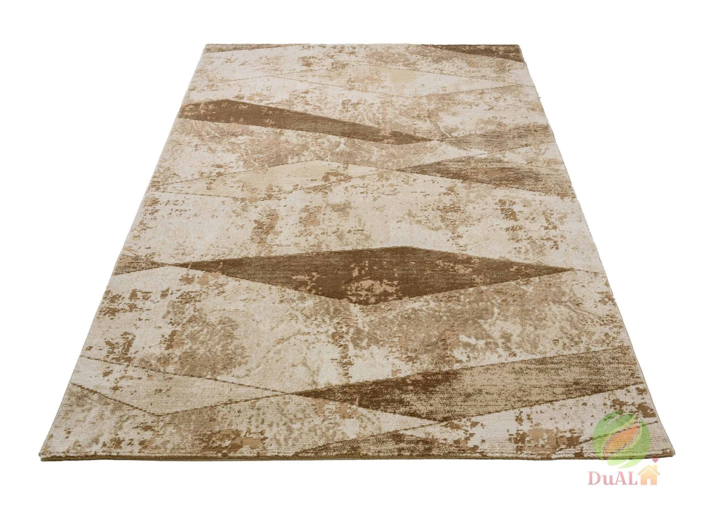 Modelul geometric al covorului, format din romburi precise și bine definite, adaugă o notă de modernitate și ordine în spațiul dvs. Linii clare și forme geometrice se întrepătrund într-un mod armonios, creând un joc vizual interesant și structurat. Acest covor nu doar completează aspectul încăperii, ci îi adaugă și o notă de inovație și simplitate sofisticată.
