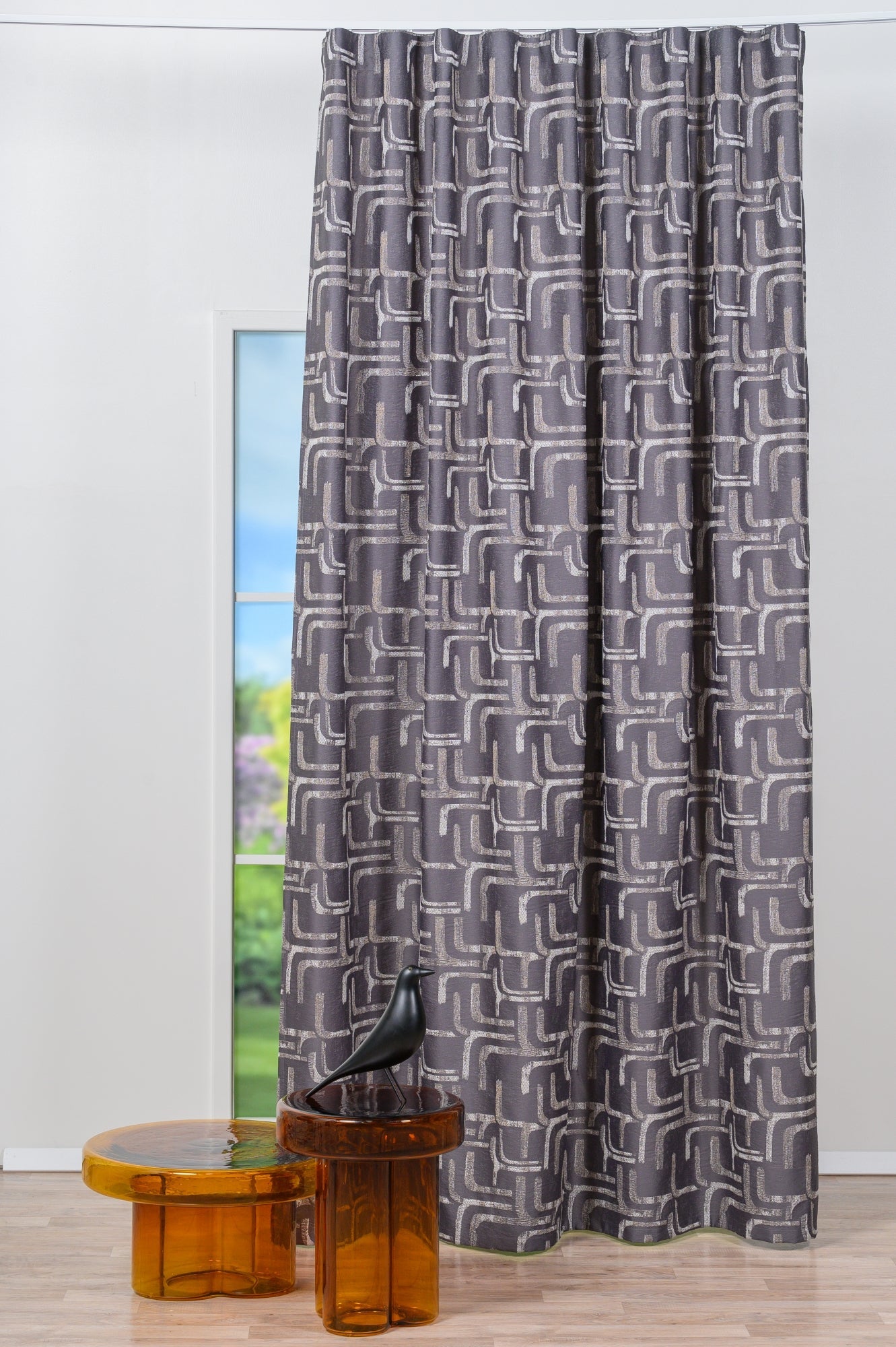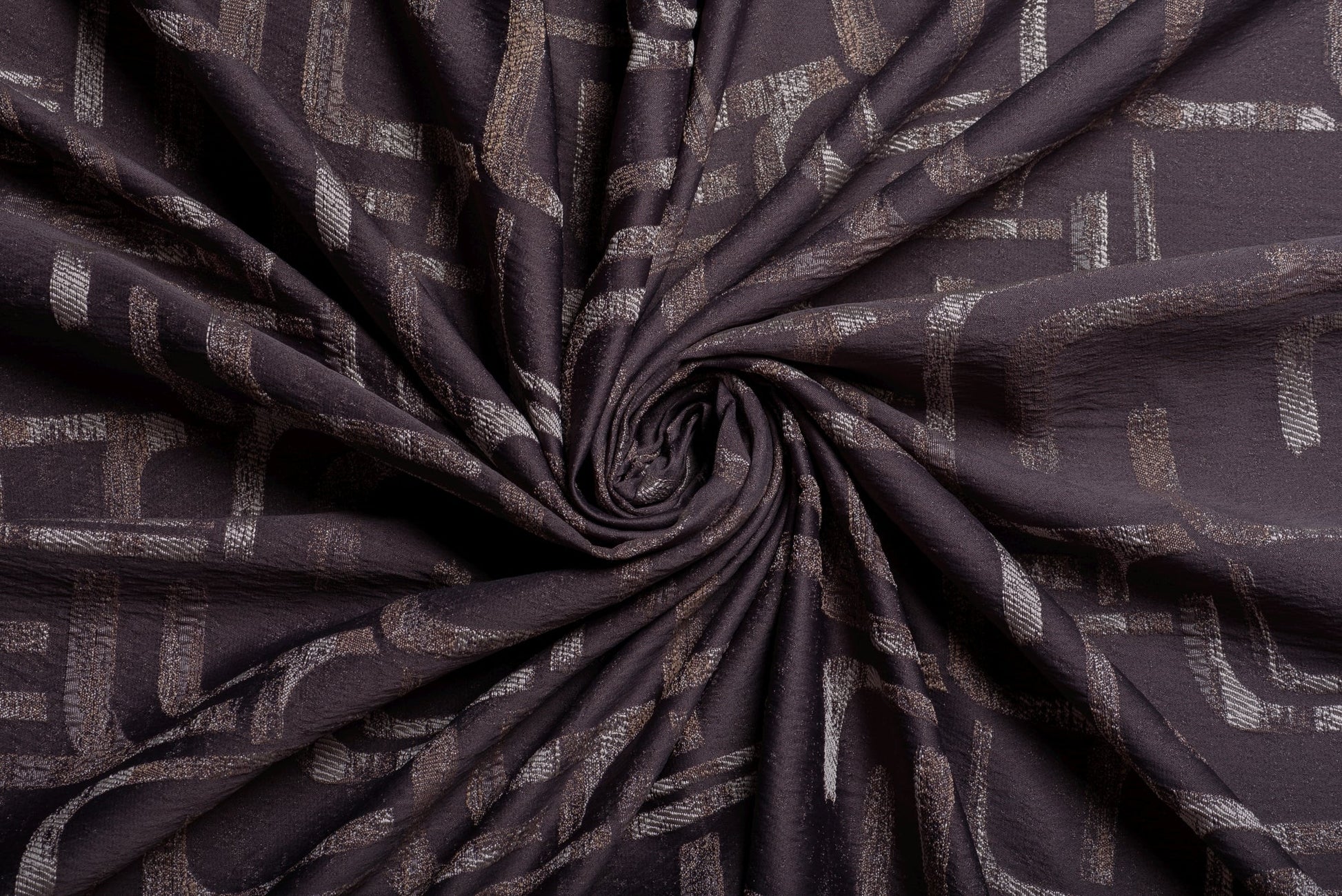 Decor Arathis, Gri Inchis, este o draperie din material jacquard cu un aspect sidefat și un model abstract în stil geometric, ideală pentru interioarele urbane și moderne.