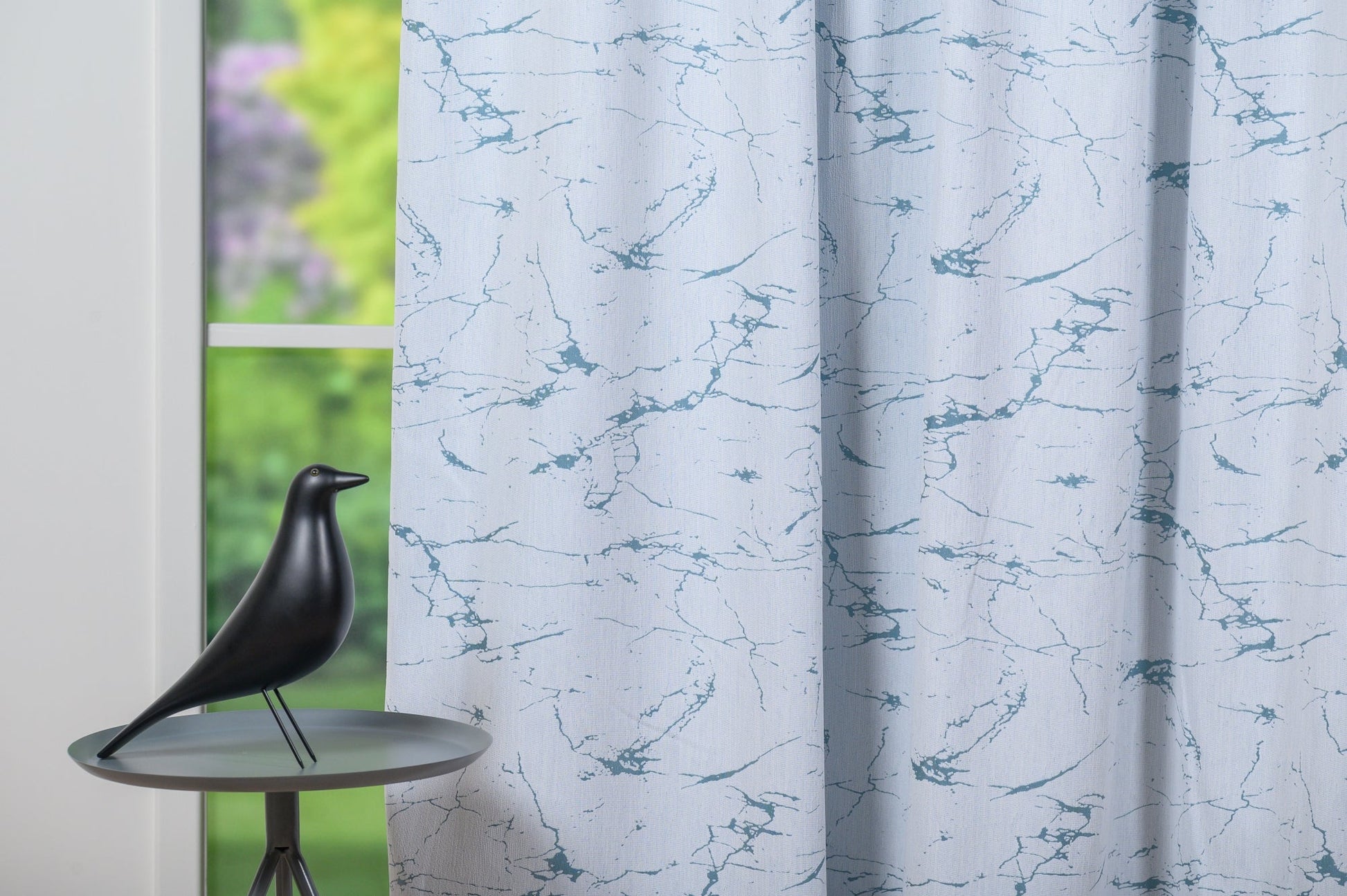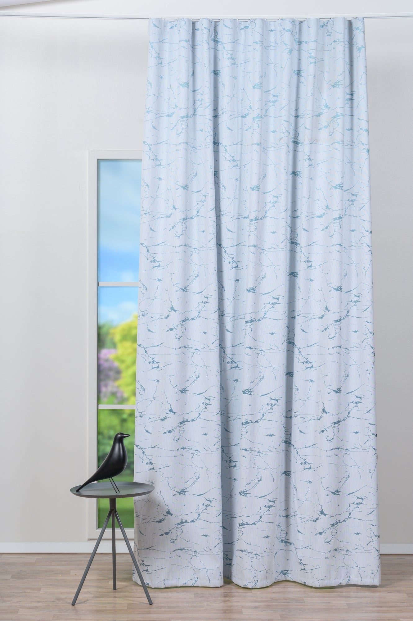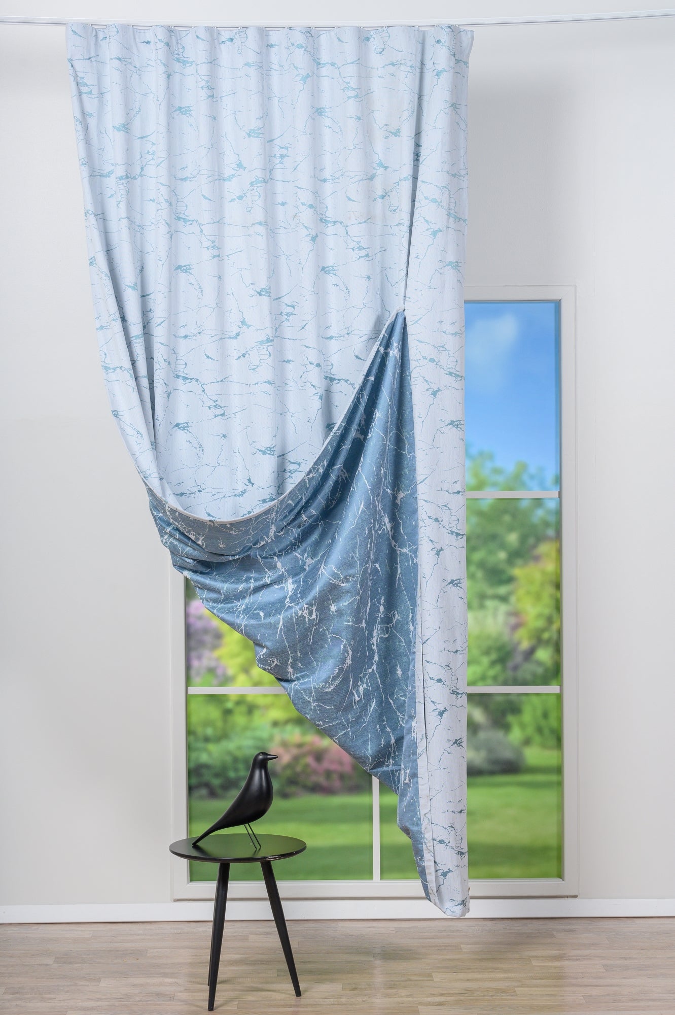 Decor Lysira, Albastru, este o draperie versatilă, cu material double-faced, care permite utilizarea ambelor fețe, oferind cumpărătorului libertatea de a alege aspectul dorit.
