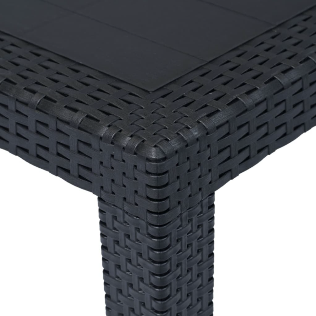 Adauga un plus de stil si functionalitate terasei sau gradinii tale cu aceasta masa eleganta cu aspect ratan sintetic, de culoare gri.