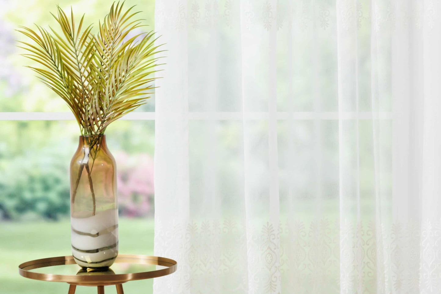 Corsa este o perdea cu model floral, expresiv, ideală pentru amenajările moderne. Materialul este unul fin care permite luminii să pătrundă în încăpere.