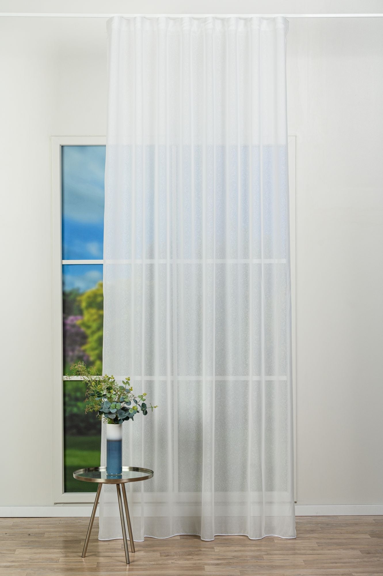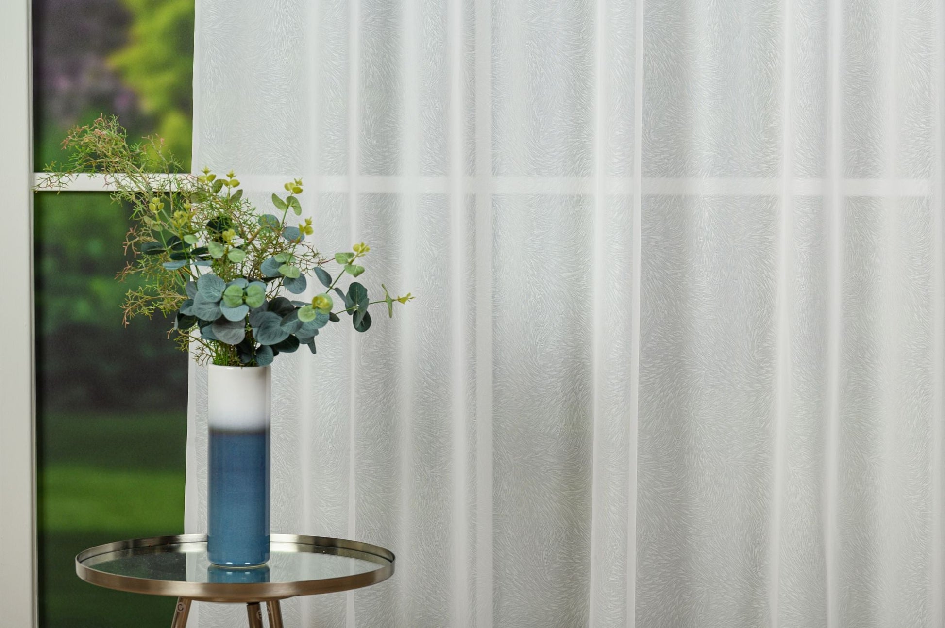 Perdea Elysia, Alb, este o perdea transparentă cu un model foarte sofisticat, fără direcție, ideală pentru un spațiu chic.