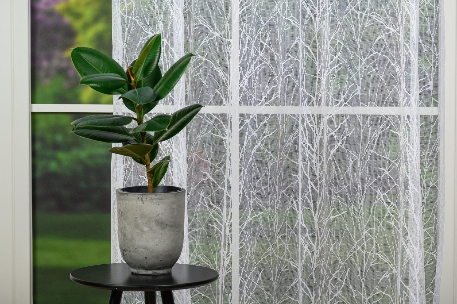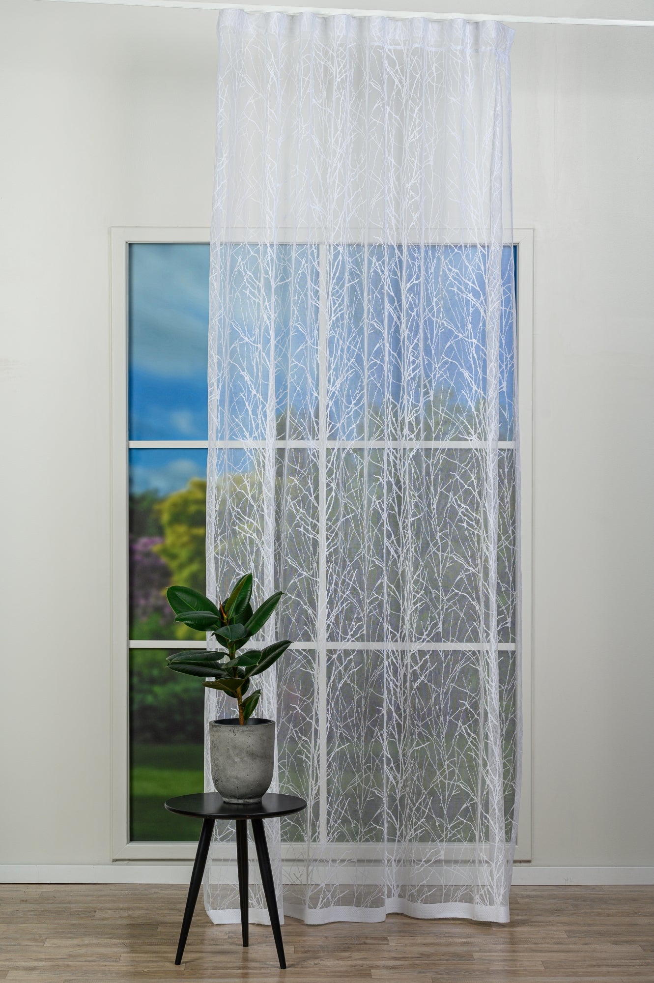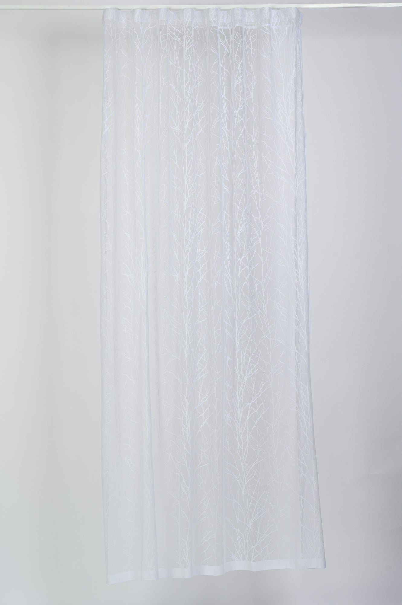 Perdea Feyra, Alb, este o perdea cu broderie în formă de crengi fără direcție, ideală pentru spații moderne.