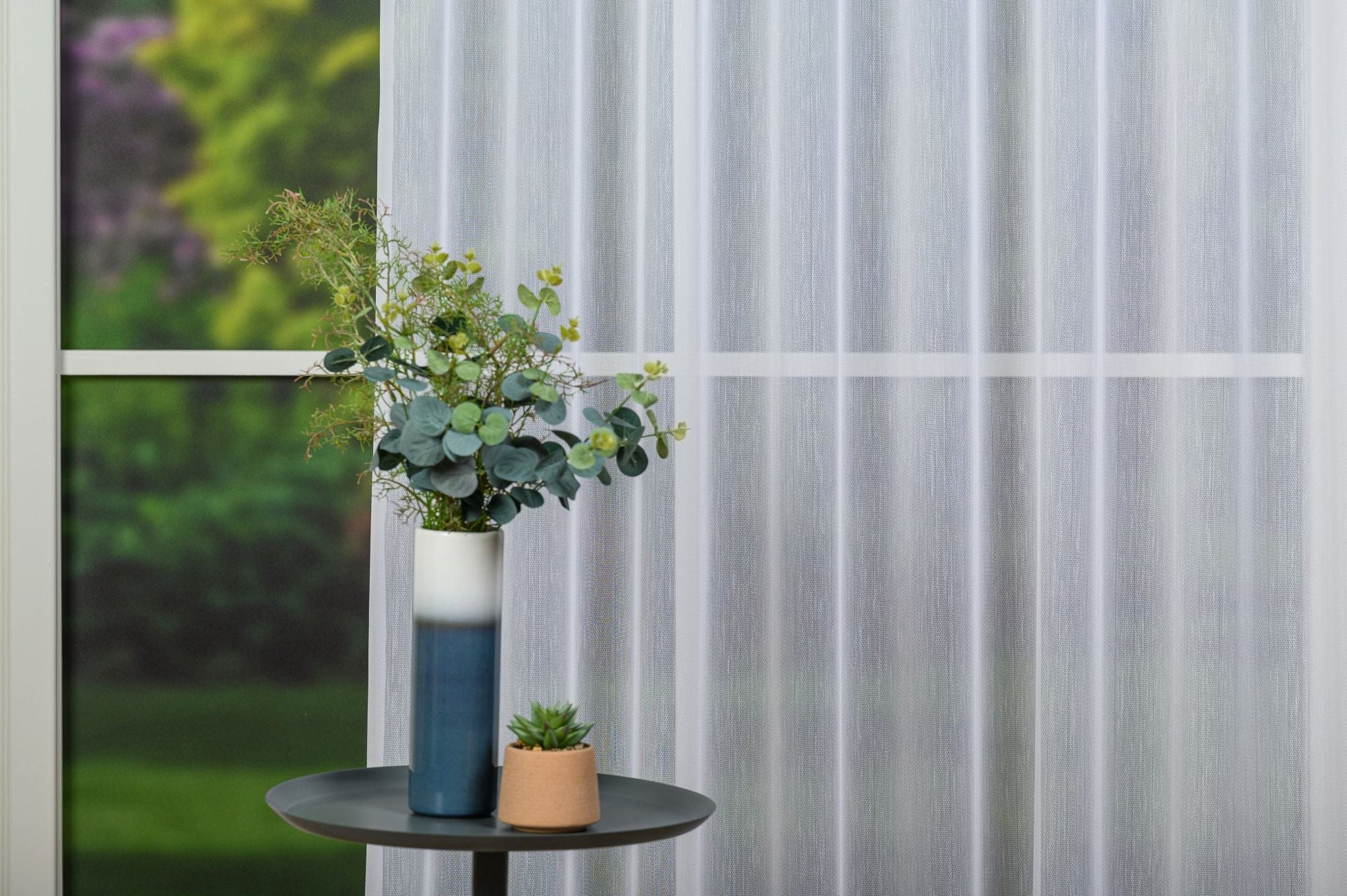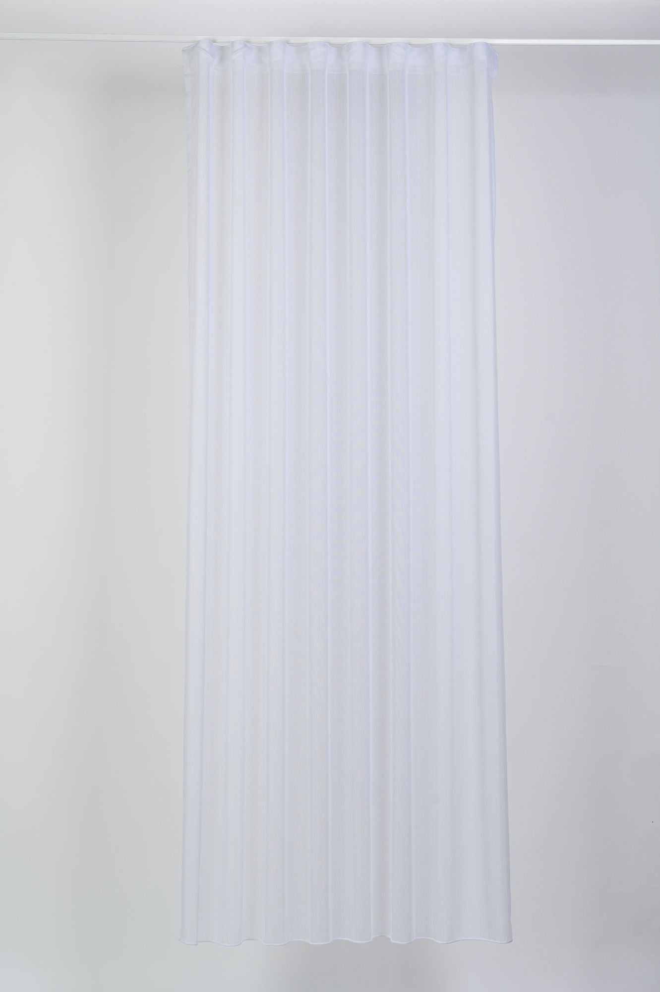 Perdea Gessira, Alb, este o perdea transparentă din țesătură jacquard cu dungi verticale.