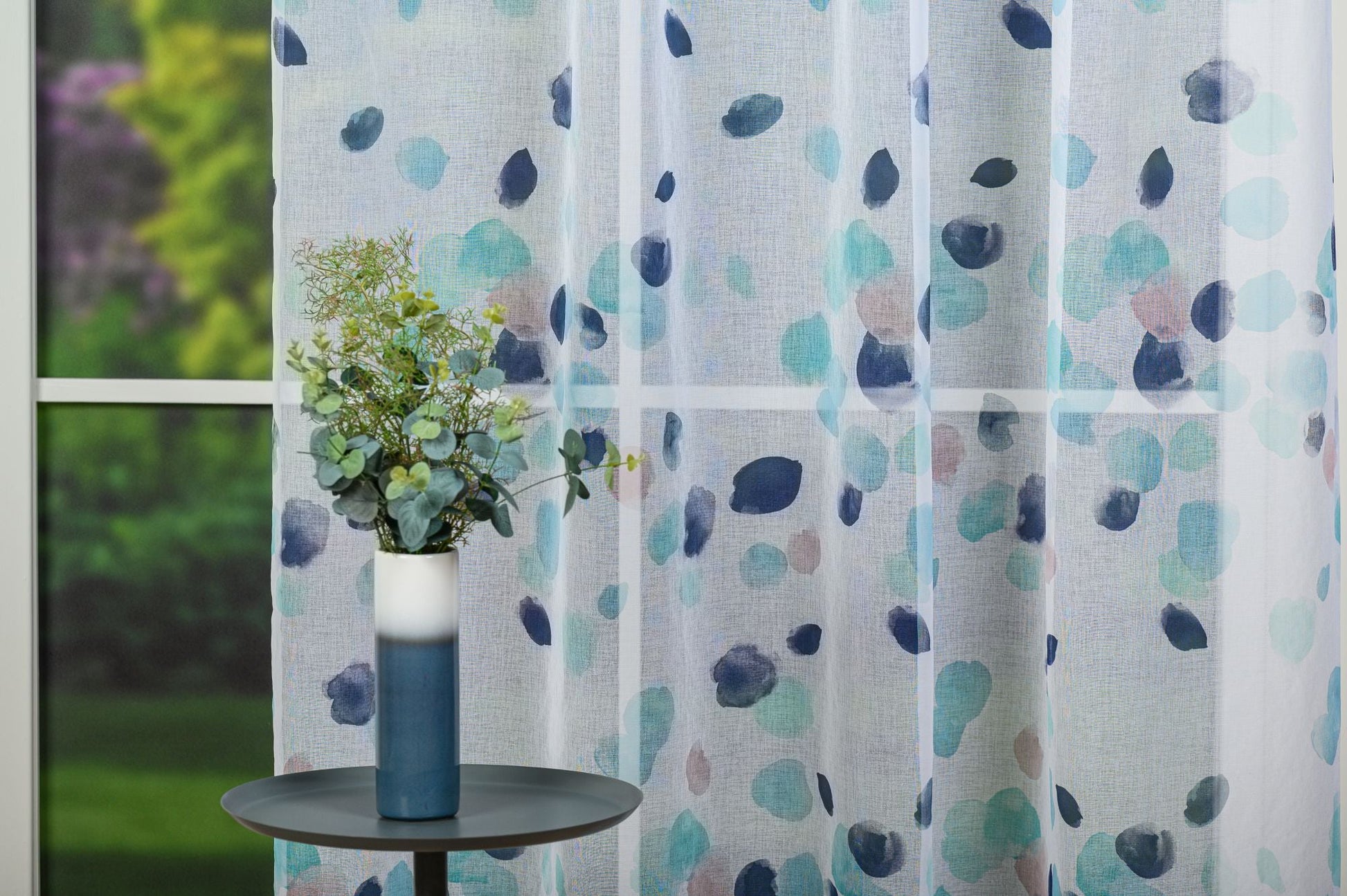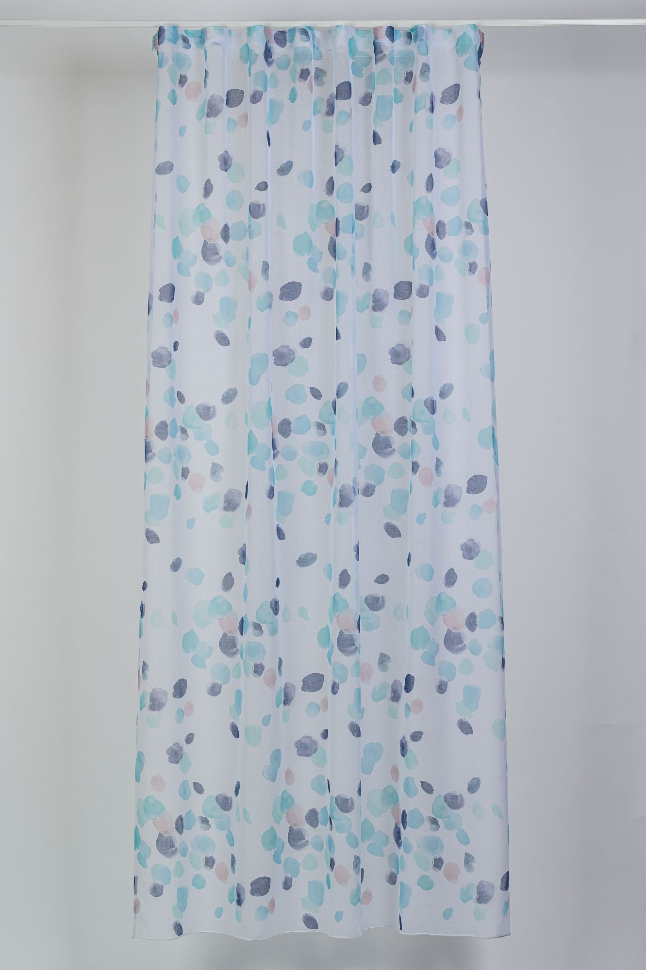 Perdea Havira, Albastru, este o perdea veselă și plină de viață, decorată cu buline multicolore.