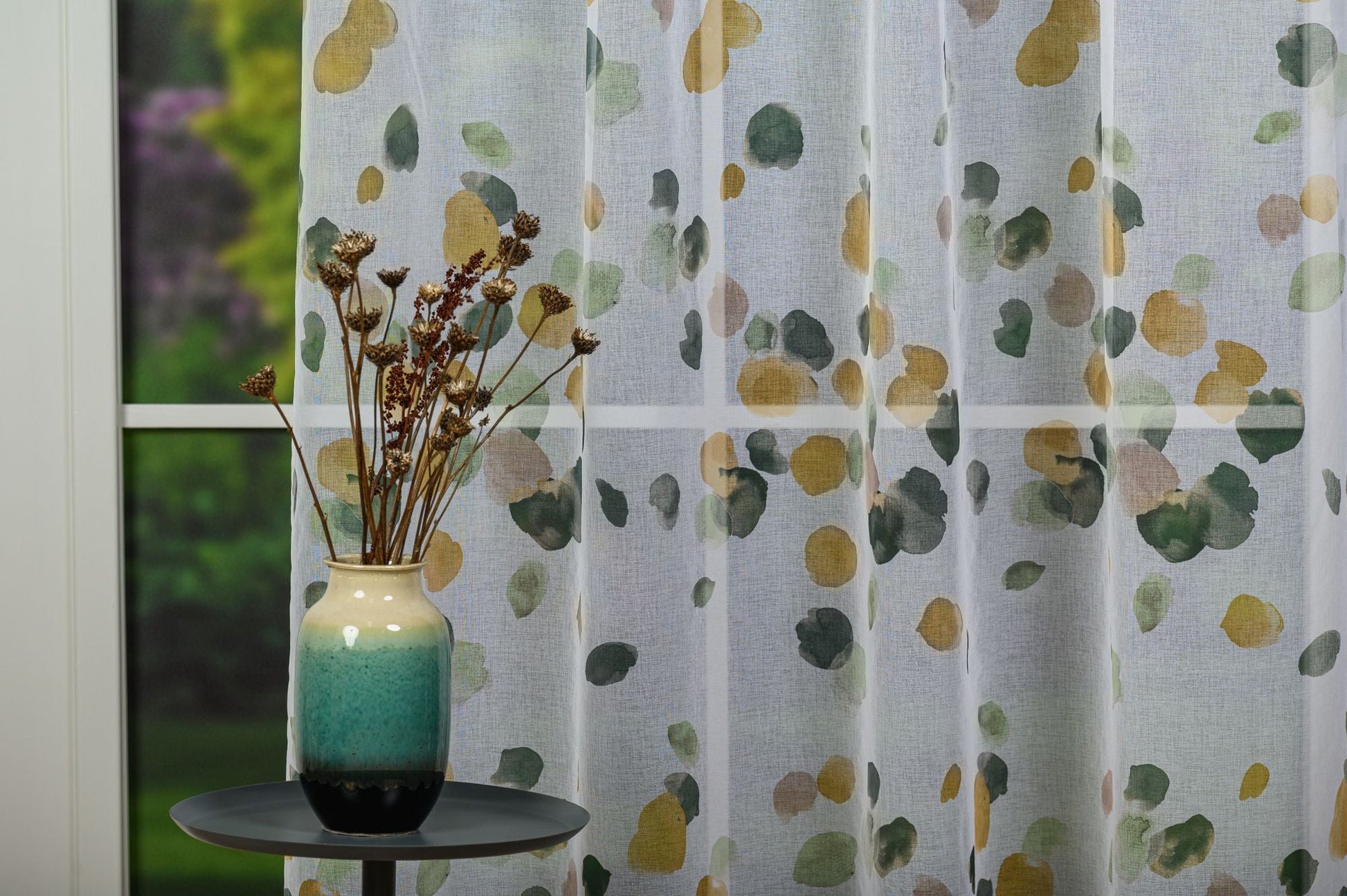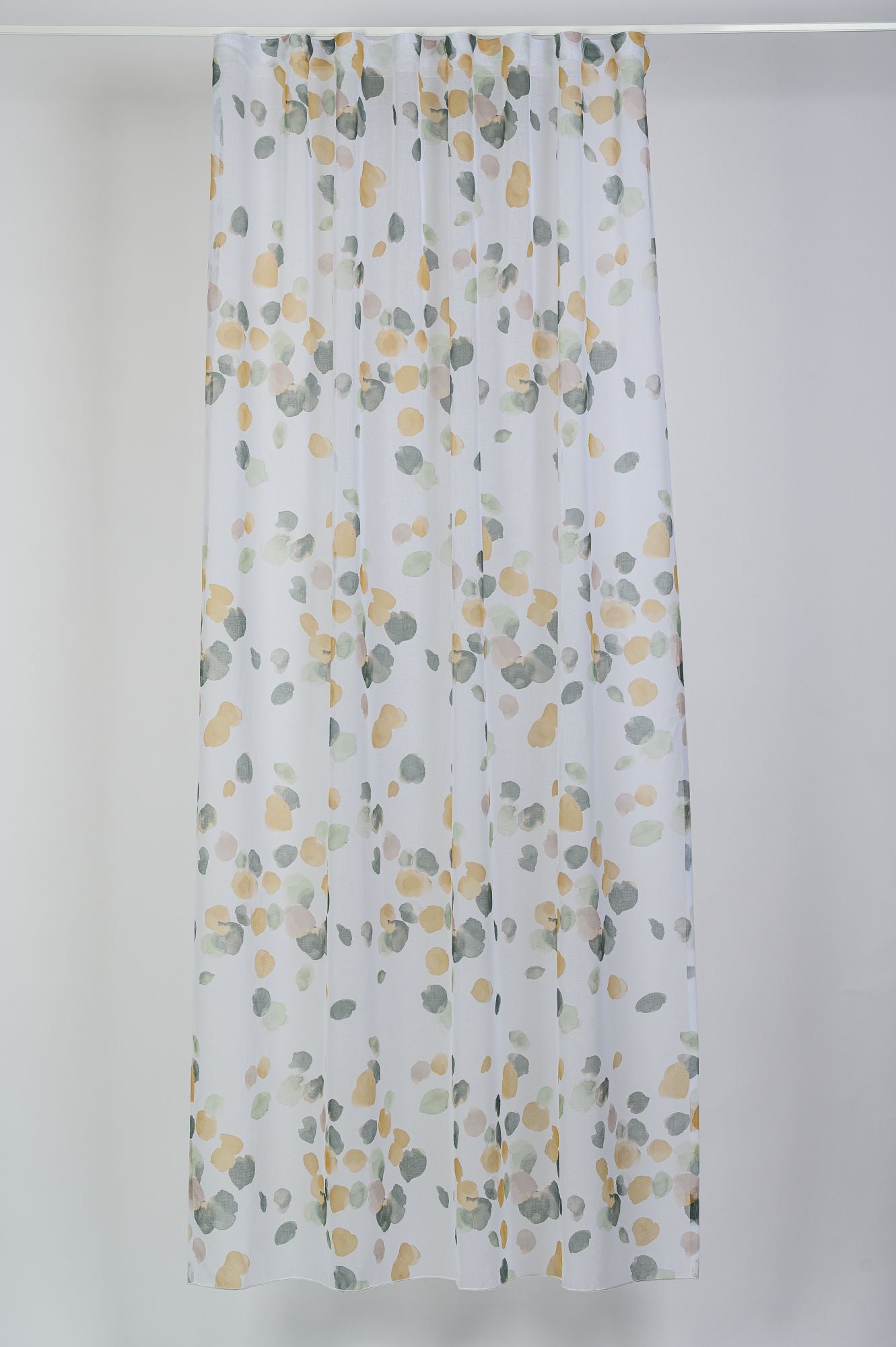 Perdea Havira, Mustar, este o perdea veselă și plină de viață, decorată cu buline multicolore.