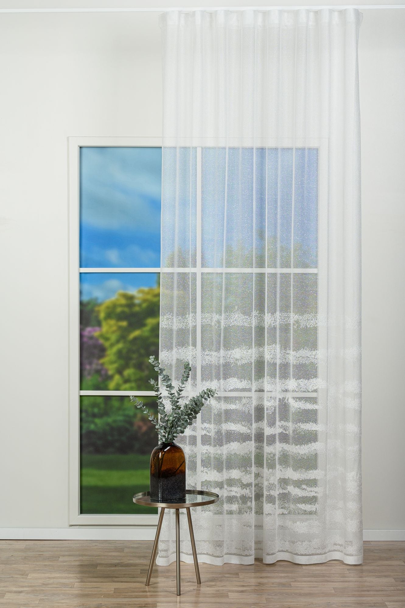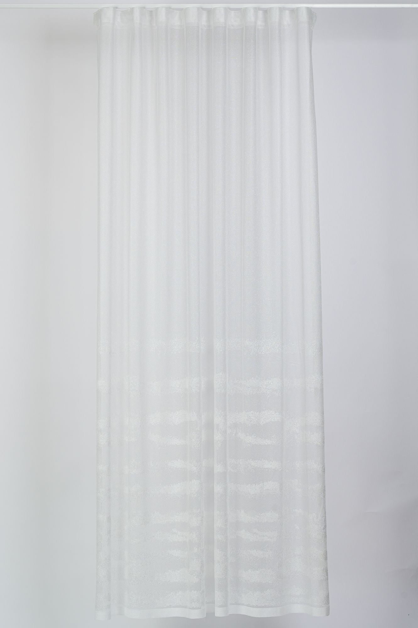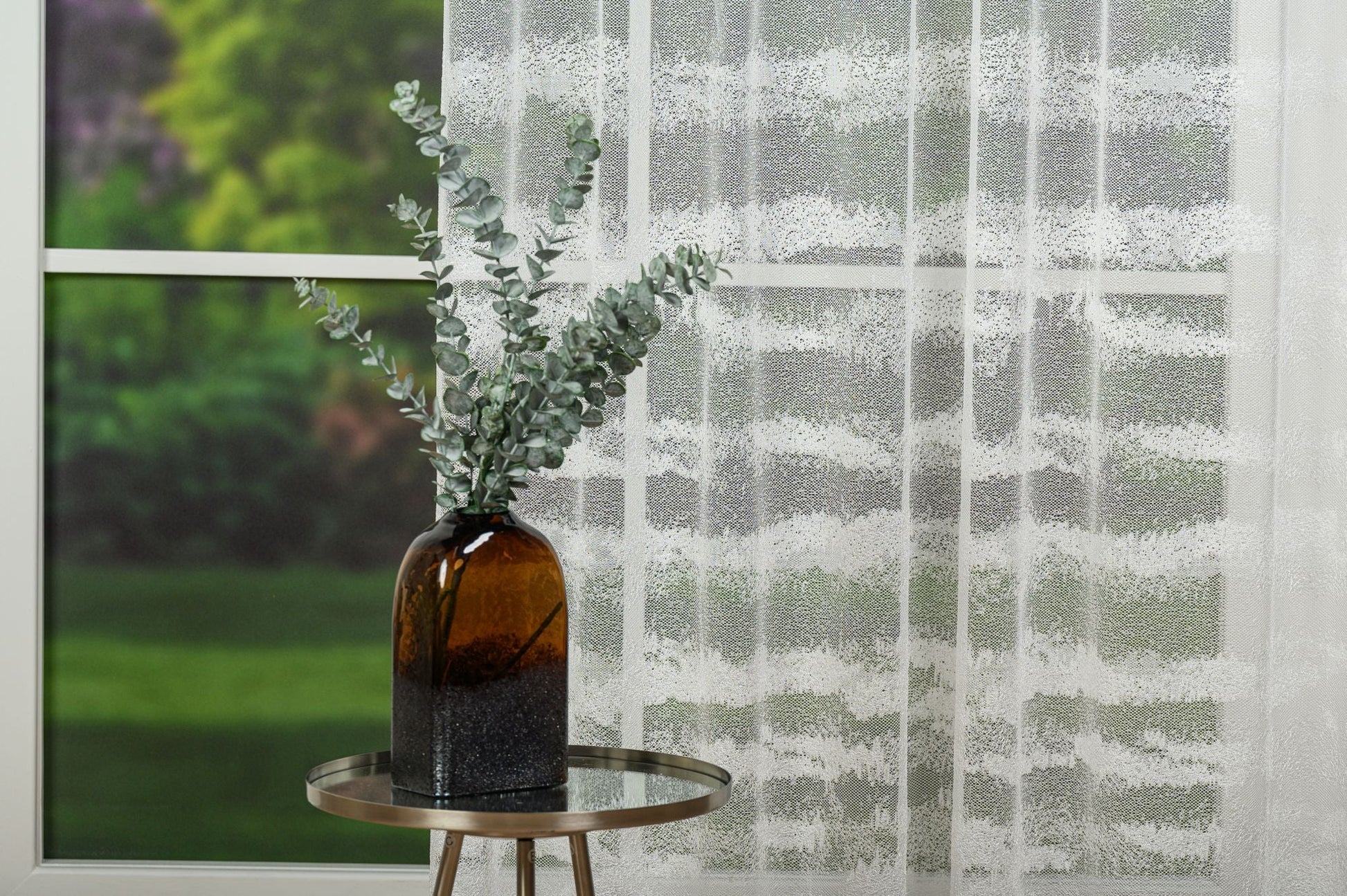 Perdea Nivoria, Alb, este o perdea din țesătură cu aspect natural, cu un model format din forme ovale legate care ies în evidență, creând un efect frumos.