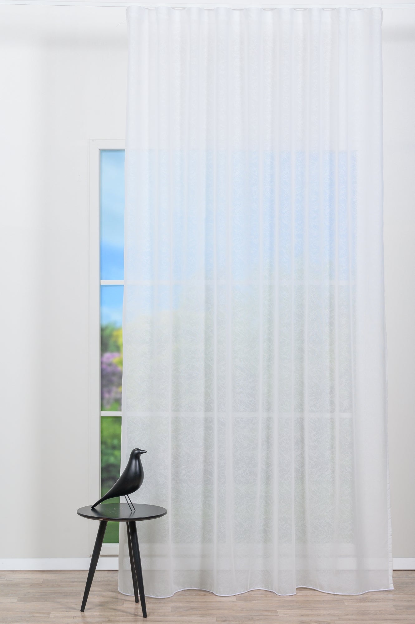 Perdea Opalin, Crem, este o perdea din material voile, decorată cu un imprimeu abstract ce adaugă un aer modern și sofisticat spațiului interior.
