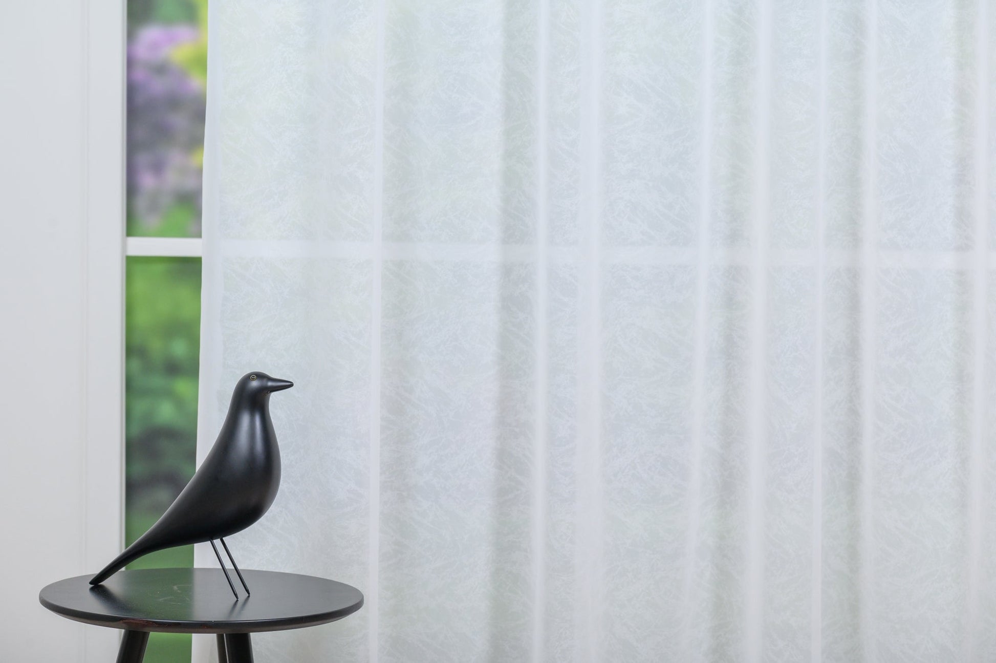 Cu o textură ușoară și fluidă, această perdea transformă lumina naturală într-un element decorativ subtil, oferind un echilibru perfect între funcționalitate și estetică.
