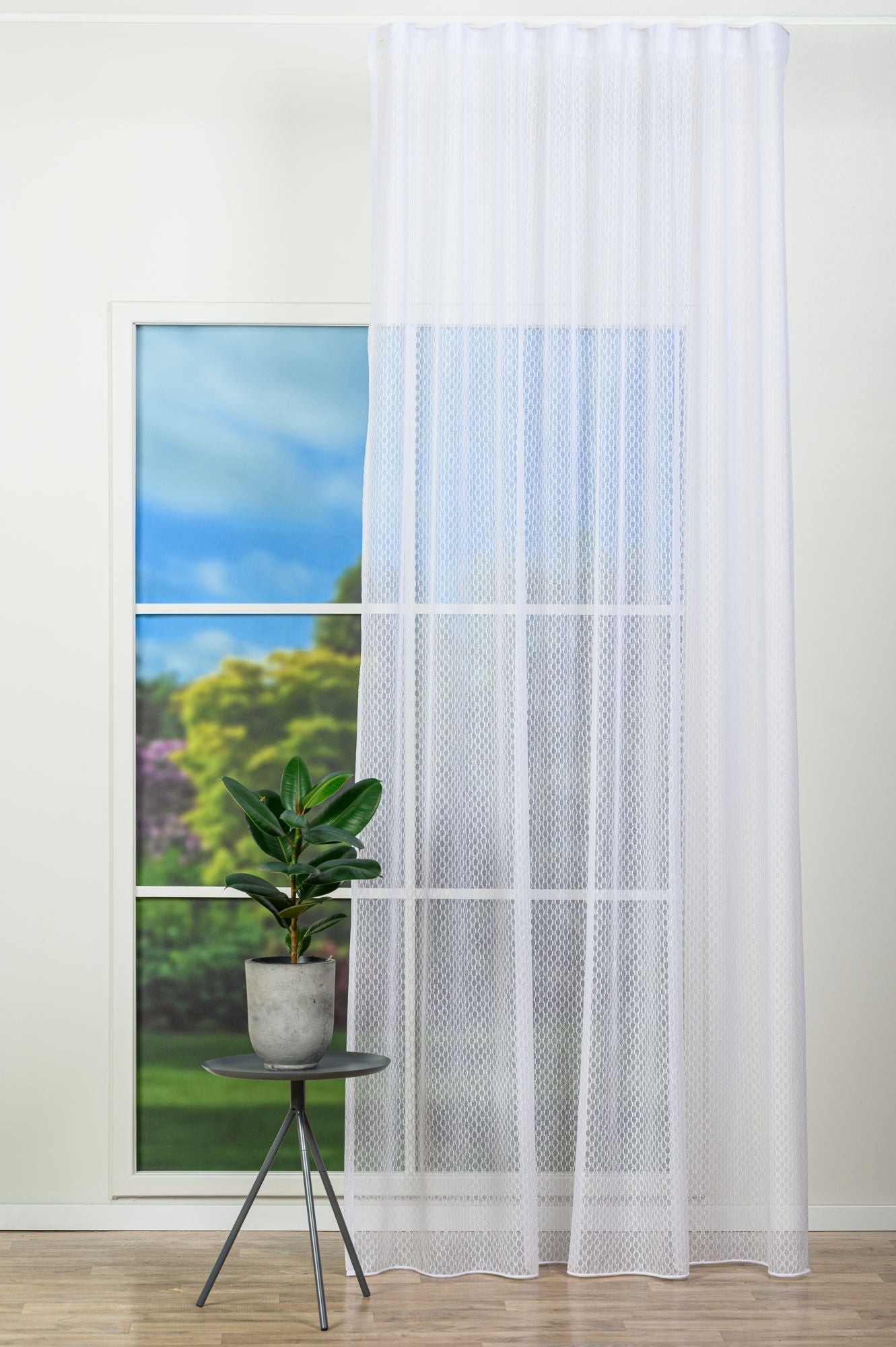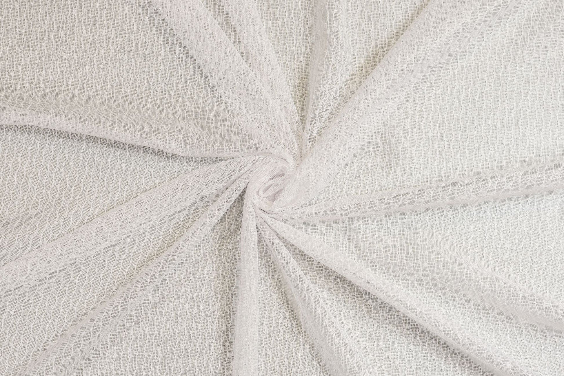 Perdea Solanna, Alb, este o perdea din țesătură cu aspect natural, cu un model format din forme ovale legate care ies în evidență, creând un efect frumos.