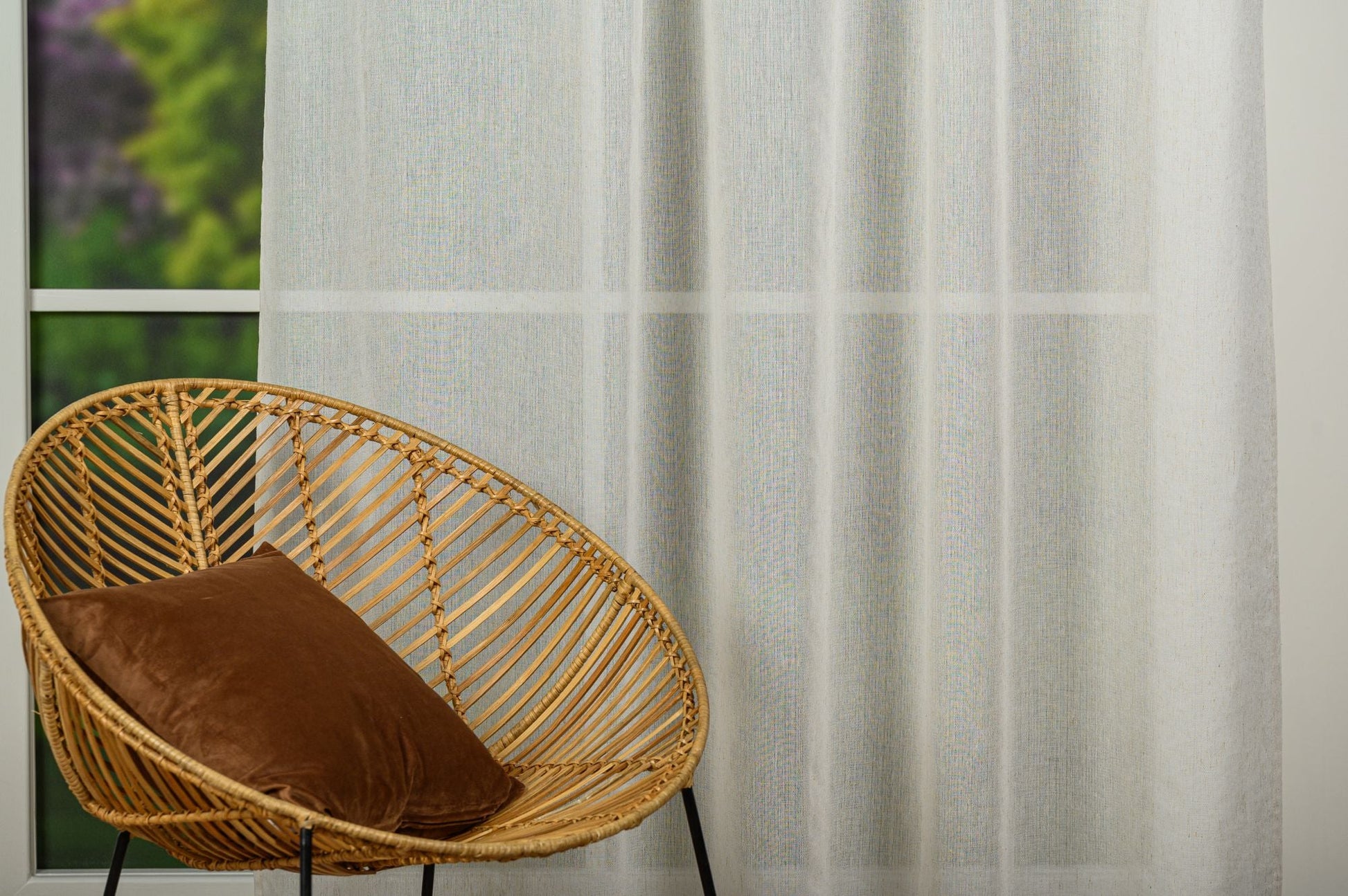 Perdea Vellora, Bej, este o perdea transparentă care se remarcă prin textura sa delicată și stilul elegant, având un aspect de in ce îi conferă un aer natural și rafinat.