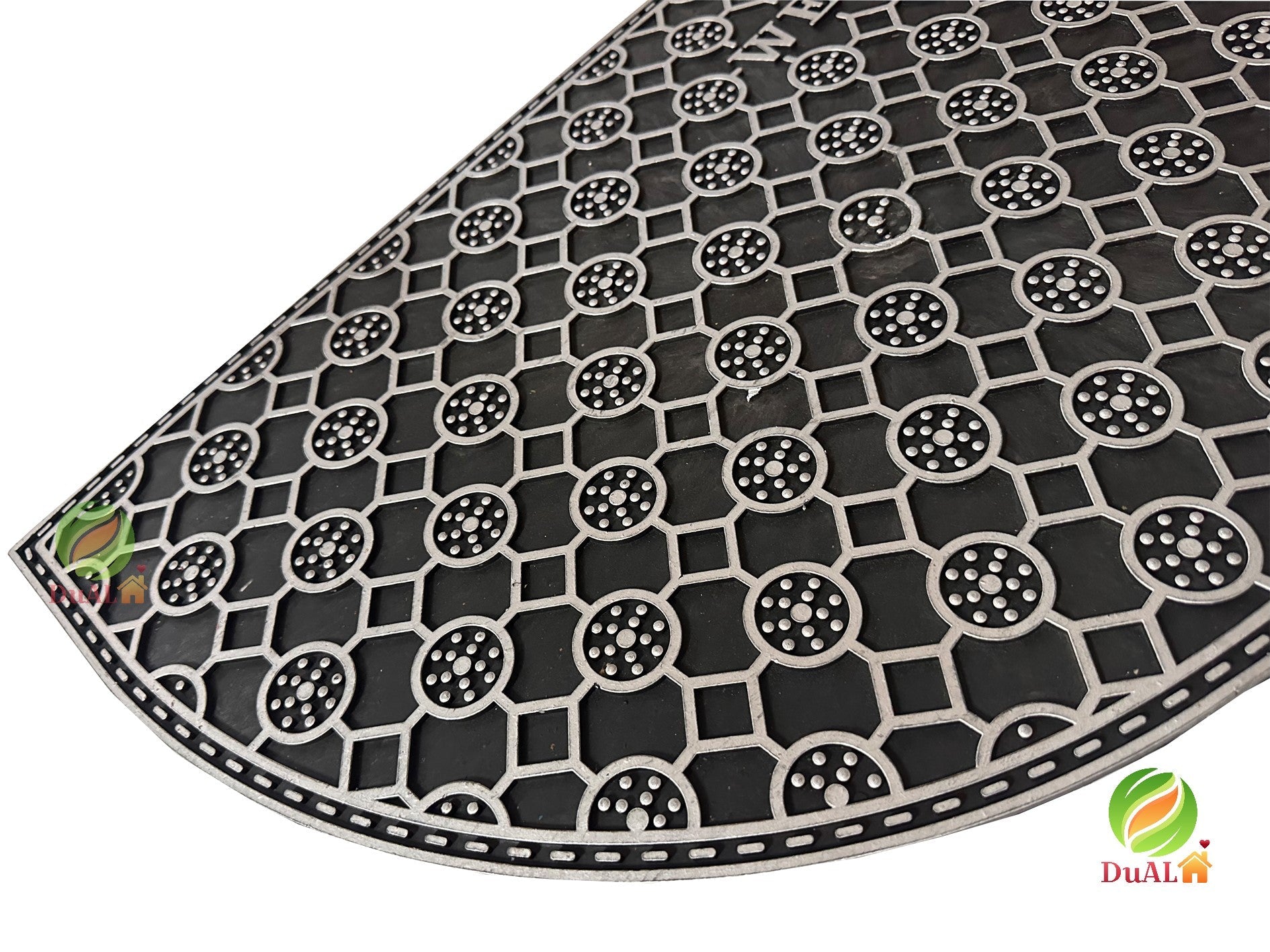 Cu forma sa semiovala, acest Pres De Intrare Dalo Argintiu, 45x70 cm se potriveste perfect in colturile incaperilor, oferind o solutie eficienta de protectie a podelei si de prevenire a alunecarilor, in acelasi timp. Culoarea sa neagra clasica, in combinatie cu detaliile aurii, adauga un plus de eleganta si sofisticare, conferind incaperii un aspect luxos.