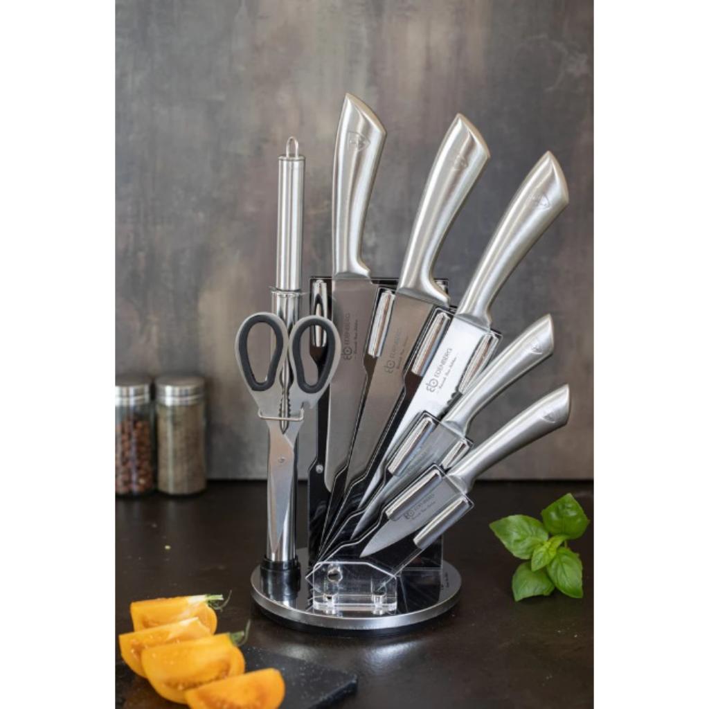 Set Bucatarie 8 Piese cu Suport Rotativ - 5 Cutite,Gri, Argintiu, Edenberg