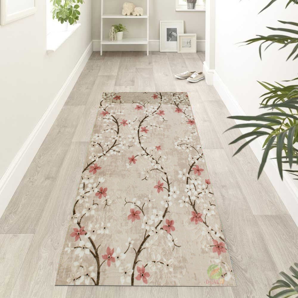 Traversa Antiderapanta Bubu Flori Roz aduce un aer delicat și romantic în orice încăpere prin modelul său floral, cu ramuri înflorite în nuanțe de roz și alb pe un fundal bej. Designul inspirat din natură oferă un sentiment de prospețime și calm, fiind ideal pentru spații precum dormitoare sau livinguri.